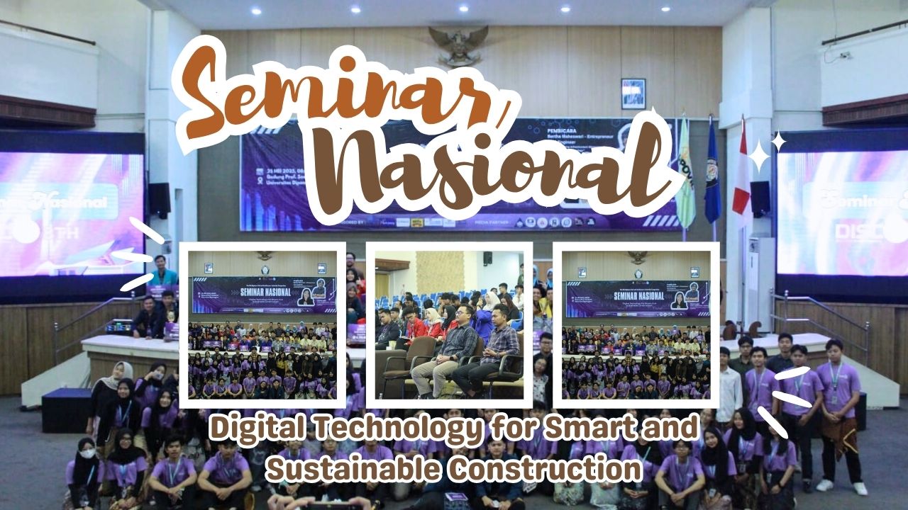 Program Studi Sarjana Terapan (S.Tr.) Teknik Infrastruktur Sipil dan Perancangan Arsitektur Sekolah Vokasi Universitas Diponegoro menggelar seminar nasional bertema “Digital Technology for Smart and Sustainable Construction” pada 25 Mei 2025. Acara ini menghadirkan dua pembicara inspiratif, yaitu Ariko Andikabina dari Ikatan Arsitek Indonesia dan Bertha Maheswari, seorang entrepreneur muda di bidang teknik sipil.